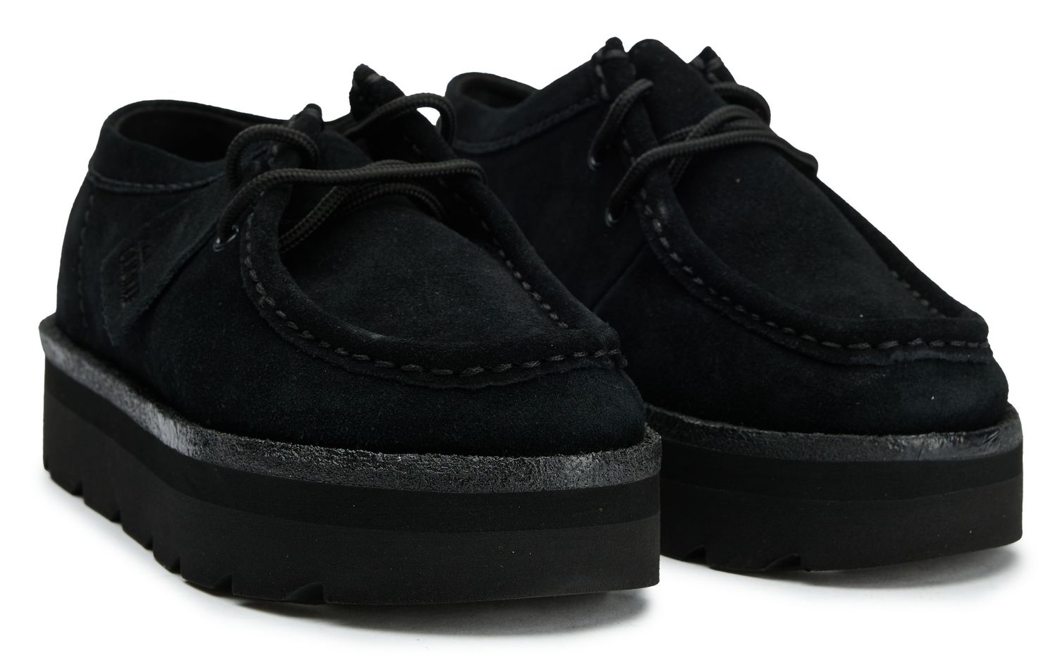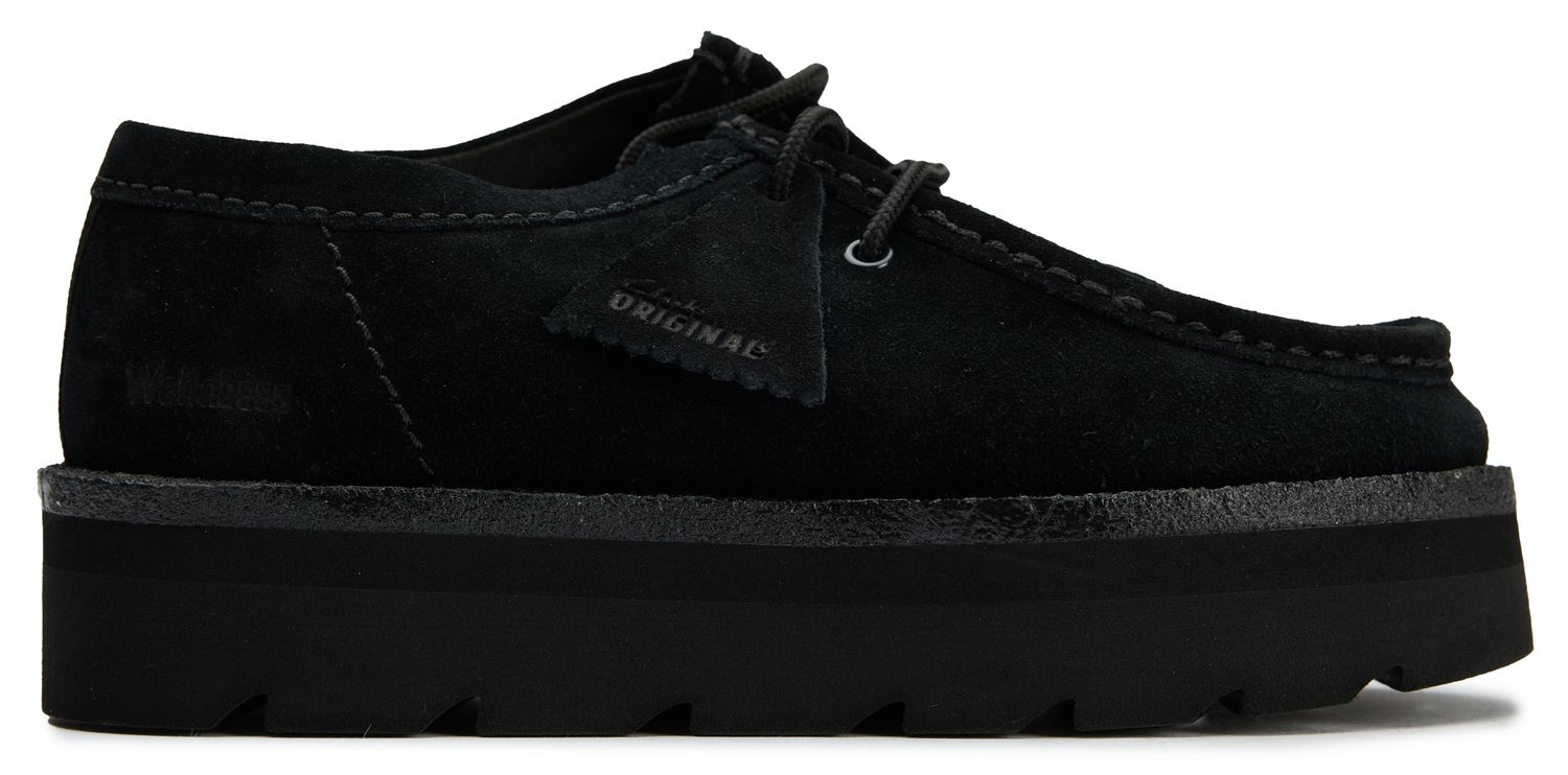 The Clarks Meara Walla reimagines the classic Wallabee silhouette with modern confidence. Rich black suede wraps your feet in luxurious comfort, while the signature apron-toe construction maintains that timeless heritage appeal. A substantial 4cm platform sole adds both height and contemporary edge, making these lace-up beauties perfect for elevating everyday looks with effortless sophistication.