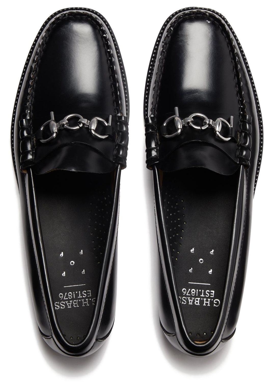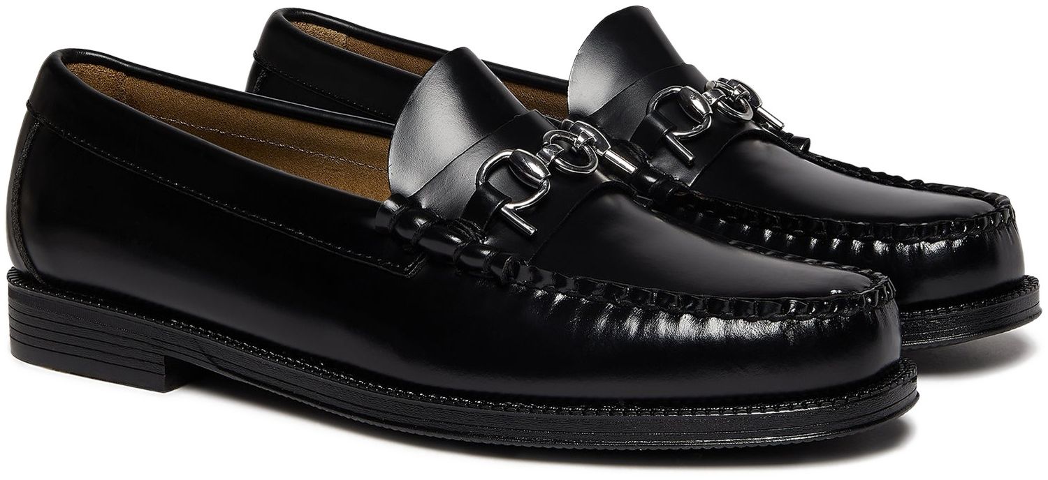 G.H.BASS & Pop Easy Weejuns Lincoln Loafers in black leather blend G.H.BASS craftsmanship with a the Pop trading company's skate-inspired edge. The loafers feature Pop's signature silver horsebit hardware for a refined yet rebellious touch. The easy slip-on design and handsewn moccasin construction ensure long-lasting comfort, while the comfort-boosting padded footbed delivers superior cushioning for all-day wear while the durable rubber outsole offers excellent grip, traction and water resistance.