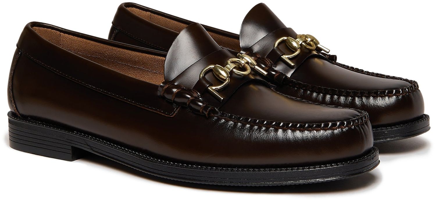 G.H.BASS & Pop Easy Weejuns Lincoln Loafers in chocolate leather fuse classic sophistication with Pop Trading Company’s modern, skate-inspired aesthetic. Expertly crafted from rich, hand-polished chocolate leather, these loafers showcase Pop's distinctive gold horsebit hardware. The slip-on silhouette features handsewn moccasin construction for flexibility and a superior fit. A padded footbed enhances comfort, while the ultra-lightweight design ensures easy wear from day to night. A waterproof rubber sole delivers high traction and resilience in wet conditions. A playful, street-smart loafer designed for a contemporary wardrobe.