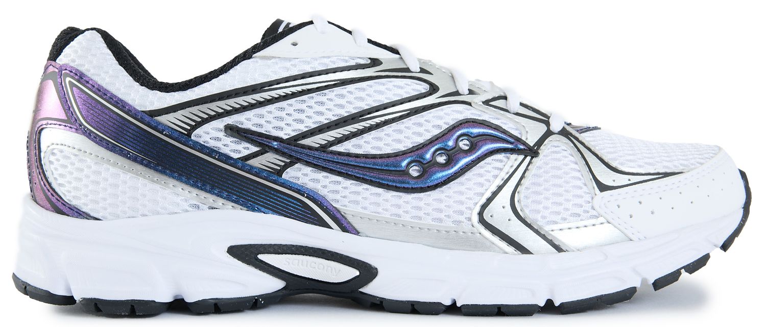 The Ride Millennium brings Saucony's signature Grid technology into a bold, Y2K-inspired silhouette. A chunky mesh upper meets silver overlays and metallic accents for a look that's equal parts nostalgic and fresh. Built on a durable rubber sole, these trainers deliver the cushioned ride Saucony's known for while making a statement with every step.