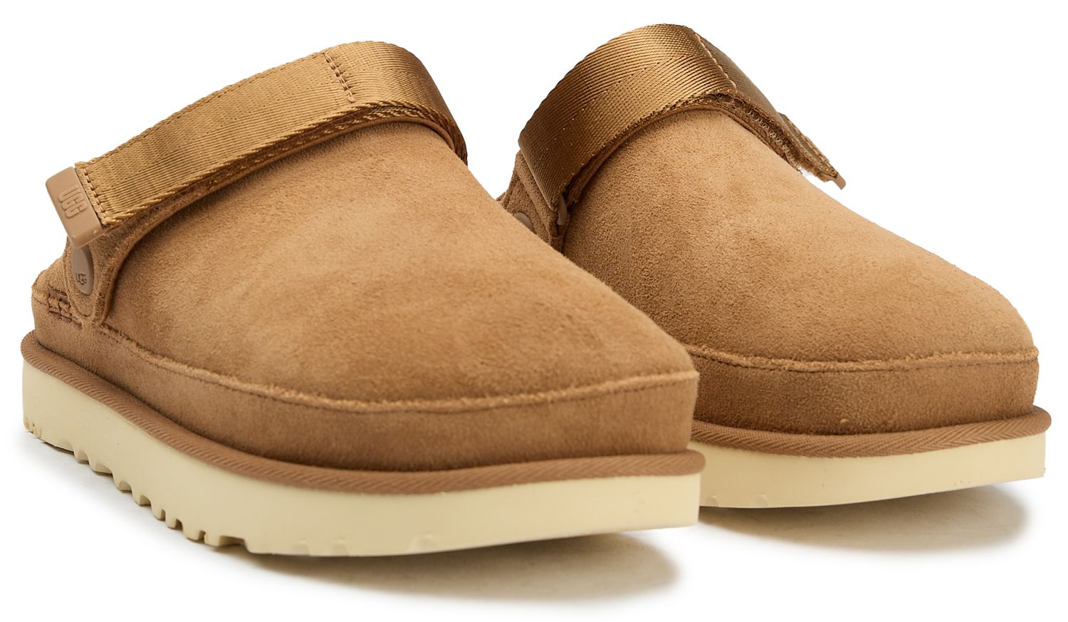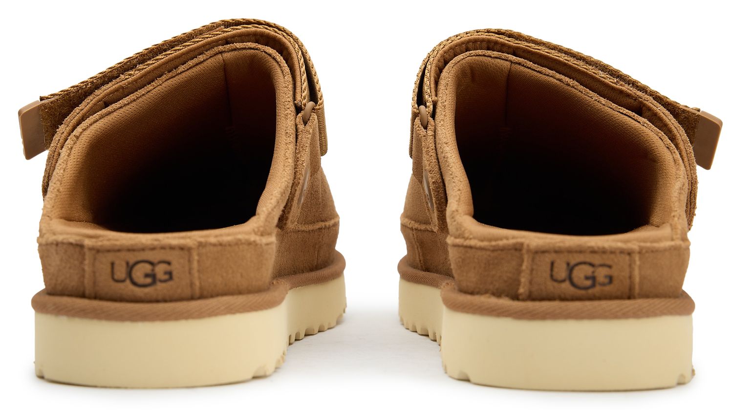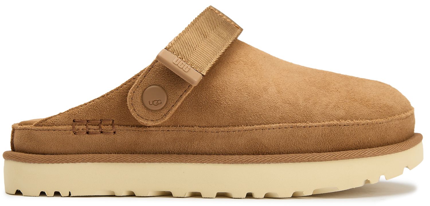 Effortless luxury meets everyday comfort in these stunning tan suede clogs that elevate your off-duty style. The plush suede upper features subtle tonal accents and signature UGG branding, while the durable rubber sole ensures reliable traction wherever your day takes you. Perfect for quick errands or cozy mornings, these backless mules slip on seamlessly for that coveted blend of sophistication and ease.