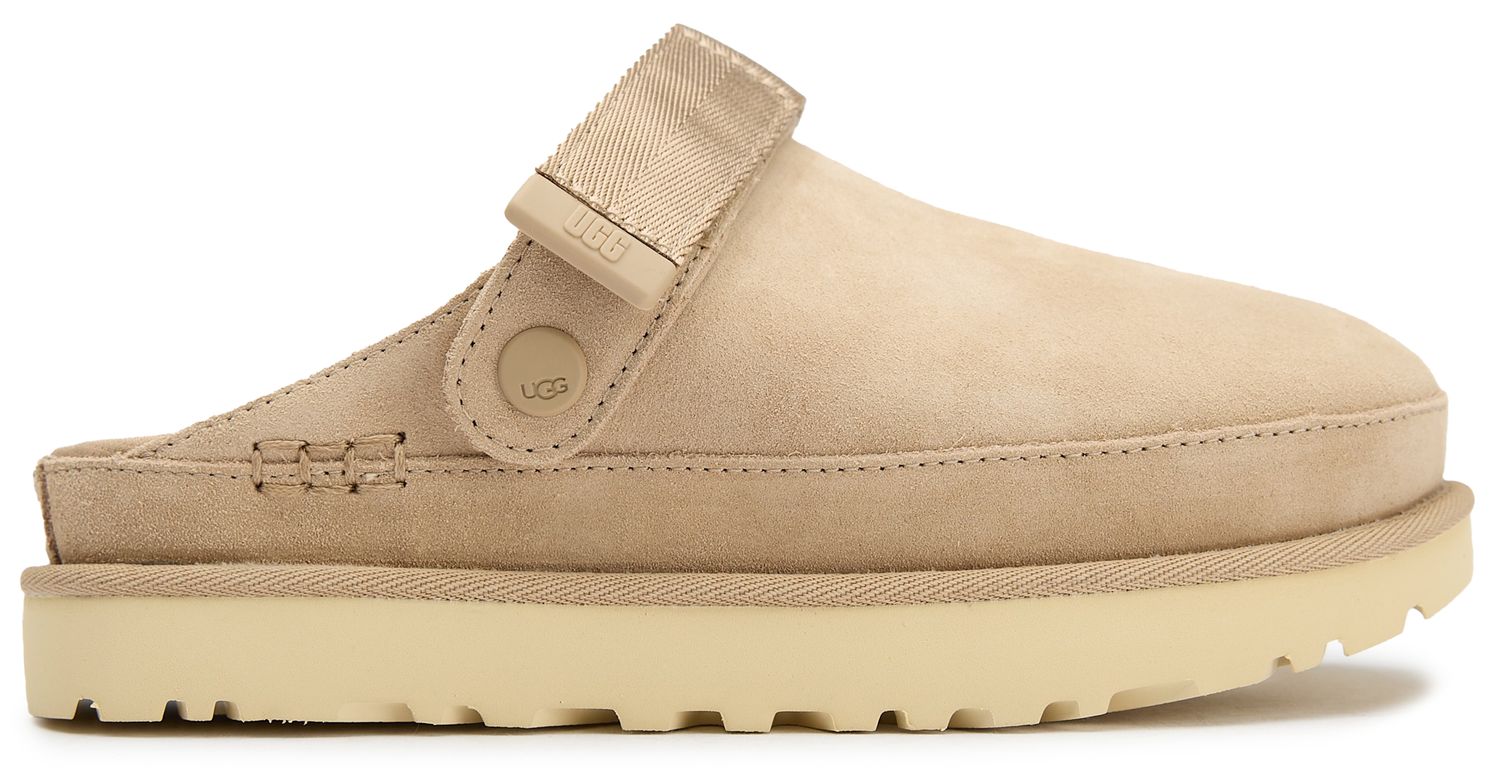 Up your summer look and lounge wear style with the UGG® Golden Star Clog with an adjustable back strap. These mules are an ultra-chic way to stay comfortable and in vogue. Crafted from sumptuous suede with a plush footbed, they offer blissful cushioning as you stroll. The sporty strap add a dash of modern style, while the iconic UGG® comfort remains. Slip into relaxation with the Golden Star Clog.
